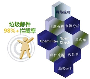 网易公司是中国互联网反垃圾邮件行业协会的发起人,并自主创新研发多项智能反垃圾技术,是目前国内反垃圾邮件技术优秀的企业。网易邮箱对垃圾邮件的拦截率已高达98%,其中正确拦截率已达99.95%,而误判率仅有0.001%,这个水准大大高于国际0.003%的业界标准。采用小红伞杀毒引擎,获得VB100、AC-C等业界重多权威机构的认证,能有效杀毒,保护用户安全;实时更新病毒库,病毒过滤率接近100%。